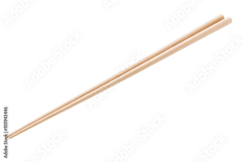 Elegant long wooden chopsticks with pointed tips, crafted from light-colored material, against a striking transparent background.