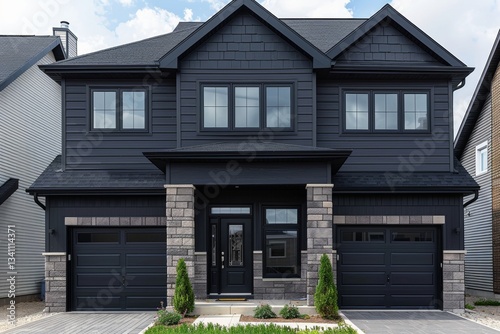 Elegant luxury home facade featuring a spacious garage and impressive driveway design