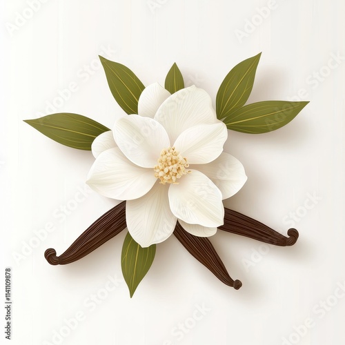 Elegant Magnolia Flower Design with Green Leaves and Natural Elements