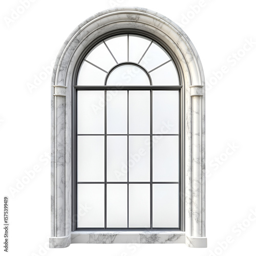Elegant marble arched window with detailed frame offers a classic architectural design element suitable for various visual projects, transparent background
