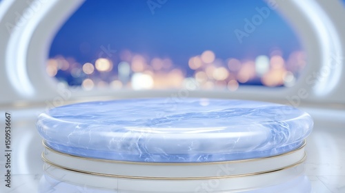 Elegant Marble Display Podium Night City View Modern Product Showcase