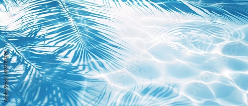 Elegant minimalist background concept featuring close-up water surface with gentle ripples and subtle blurred palm leaf shadows on the beach, evoking a peaceful, natural and pure atmosphere.