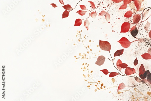 Elegant Minimalist Background with Red and Gold Flora