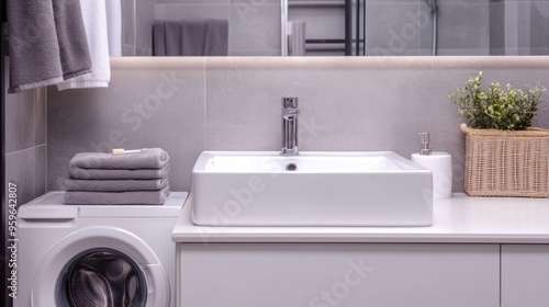 Elegant Minimalist Bathroom: White Sink and Gray Tiles.