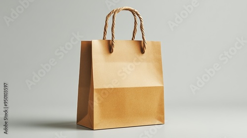 Elegant Minimalist Brown Paper Shopping Bag on Gray Backdrop