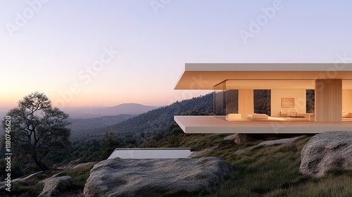 Elegant Minimalist Interior with Wood and Stone Elements