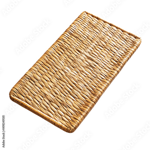 Elegant Minimalist Straw Beach Mat with a Classic W Isolated on Transparent Background