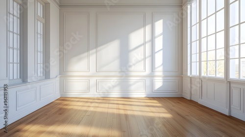Elegant Minimalist White Wainscoting Wall with Wooden Floor Interior Design