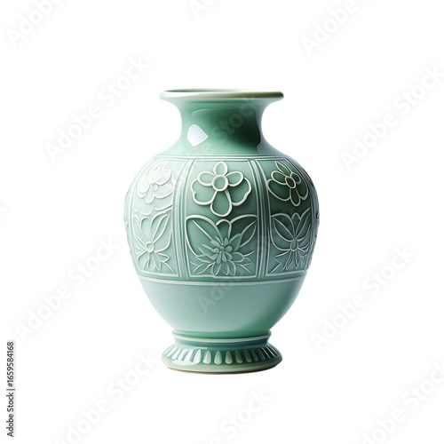 Elegant Mint Green Ceramic Vase with Delicate Embossed White Floral Patterns