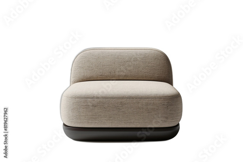 Elegant modern armchair with beige fabric upholstery and dark wooden base 3d render