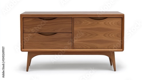 Elegant modern storage cabinet with sleek lines, closed drawers, and open shelves for easy access to organized items.