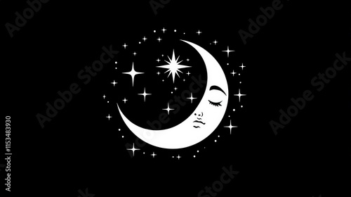 Elegant Moon and Star Illustration on Black Background