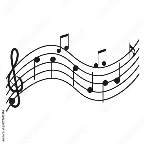 Elegant Musical Notes Staff with G Clef Floating on a White Background for Creative Projects and Designs