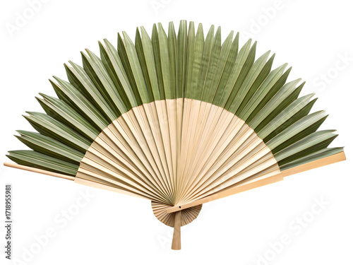 Elegant natural palm leaf fan for cooling and stylish decor, bringing tropical vibes indoors,isolated on white background
