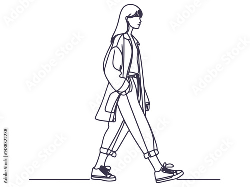 Elegant One-Line Drawings of Women Walking in Fashionable Outfits – Minimalist Female Line Art Illustration Set.