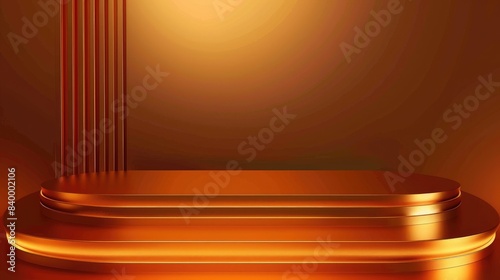 Elegant orange podium with stylish gold lines, designed for award displays or premium products. Vector illustration.