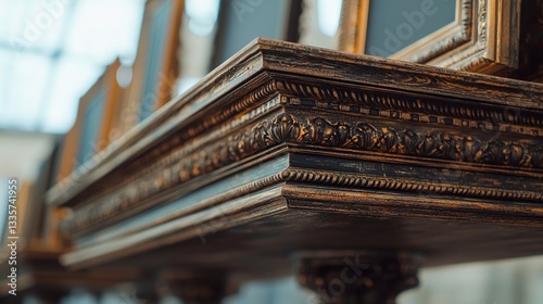 Elegant Ornate Picture Frames Gallery Display Antique Gold Dark Wood Closeup
