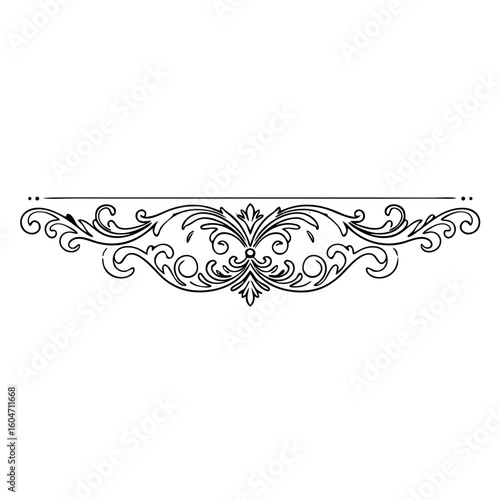 Elegant ornate text divider with intricate swirls, black and white design, for sophisticated layouts