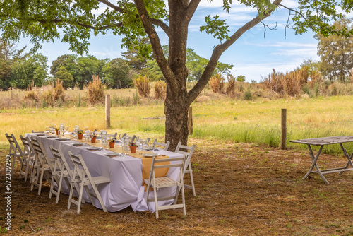 Elegant Outdoor Dining Table in a Meadow Under a Tree, Farm to Table Meal, Montevideo Uruguay