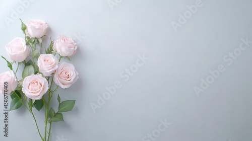 Elegant pale pink roses on a soft blue background, creating a serene and delicate floral composition.