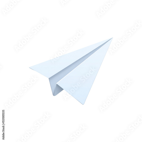 Elegant paper airplane soaring through a clear blue sky representing freedom, creativity, and imagination in motion Transparent background or png