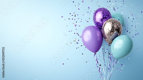 Elegant Pastel Balloons Celebrate Joyfully Against a Soft Blue Background: 3D Render. AI Generated