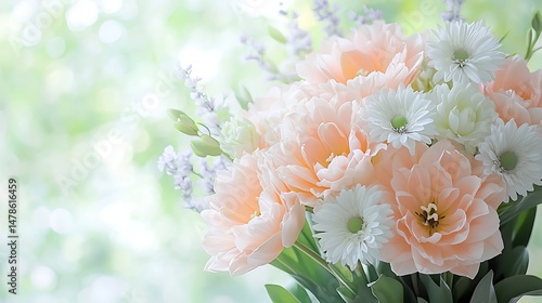 Elegant pastel bouquet of tulips and daisies