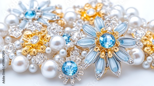 Elegant Pearl and Crystal Jewelry Blue and Gold Floral Design
