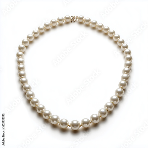 Elegant pearl necklace displayed in top view on white background exudes refined beauty and sophistication