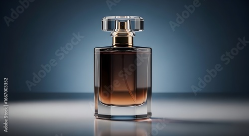 Elegant Perfume Bottle on a Reflective Surface Showcasing Luxury and Sophistication in a Studio Setting with Gradient Background