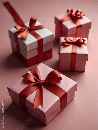 Elegant Pink and Red Gift Boxes with Ribbons Romantic Present Arrangement Valentine s Day or