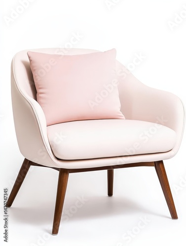 Elegant pink cushion on a modern armchair against a white backdrop, showcasing minimalist design