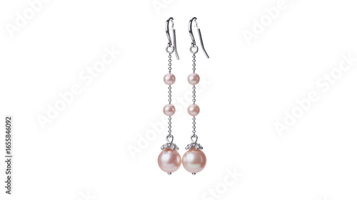 Elegant Pink Pearl and Diamond Drop Earrings on Transparent Background