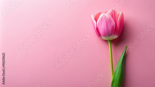 Elegant pink tulip flower over pastel pink background. Minimalist simple close up view flower, tulip, pink, elegant