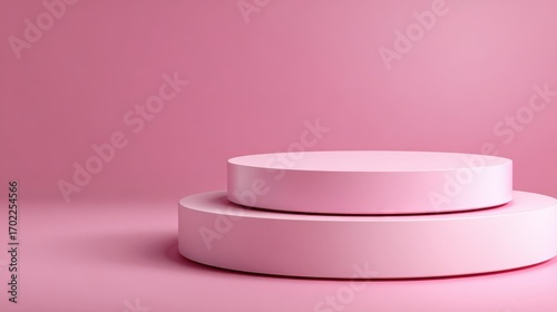 Elegant Pink Two-Tiered Podium for Product Showcase, Marketing Display, and Commercial Presentation in Studio Setting