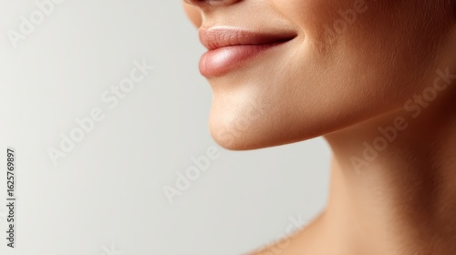 Elegant portrait of a woman with pink lipstick on clean white background.