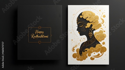 Elegant radhashtami greeting card design featuring a golden silhouette of radha, the hindu goddess, perfect for celebrating the auspicious hindu festival