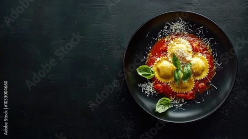 Elegant Ravioli Dish with Tomato Sauce Presentation