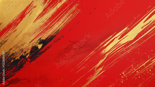 Elegant Red Background with Golden Brushstrokes, Abstract Lines, and Traditional Chinese Calligraphy-Inspired Design with Gold Border