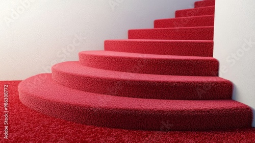 Elegant red carpet steps in a minimalist indoor space with soft natural lighting