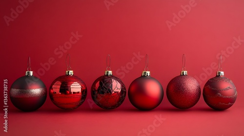 Elegant Red Christmas Background with Ornament Decoration for Festive Holiday Design