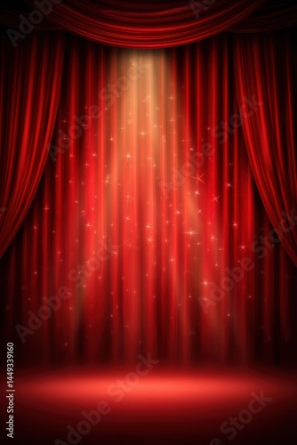 Elegant Red Curtain Stage with Dramatic Lighting and Sparkles