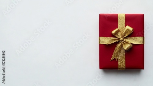 Elegant Red Gift Box with Gold Ribbon on White Background Representing Holiday