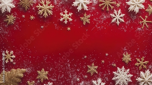 Elegant Red Holiday Background with White and Gold Snowflakes – Christmas and Winter-Themed Image for Greeting Cards, Invitations, and Seasonal Designs with Ample Space for Text
