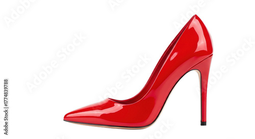 Elegant Red Patent Leather High Heel Stiletto Shoe Isolated on Transparent Background