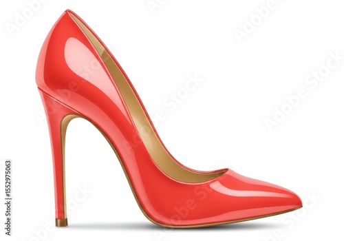 Elegant red patent leather stiletto heel shoe isolated on white background