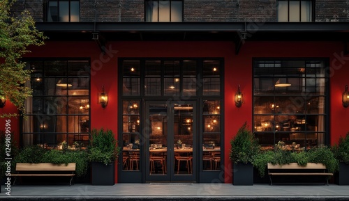 Elegant Red Restaurant Exterior at Night
