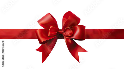 Elegant Red Ribbon Bow: A close-up studio shot reveals a vibrant red ribbon, meticulously tied into a beautiful bow, symbolizing gifts, celebration, and special occasions.