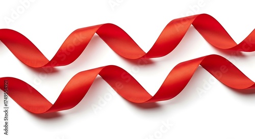 Elegant Red Ribbon Waves on White Background for Celebratory Designs.