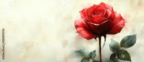 Elegant Red Rose with Soft Background and Subtle Artistic Touches